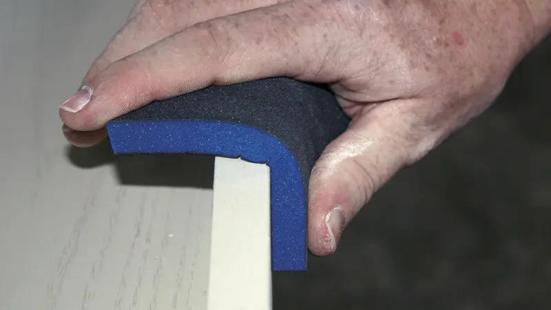 Corps de forme stable, recouvert des deux côtés, flexible à manipuler, pour les surfaces profilées, convient pour un meulage aussi bien mouillé qu’à sec, pour les parties en bois, en métal ou peintes.